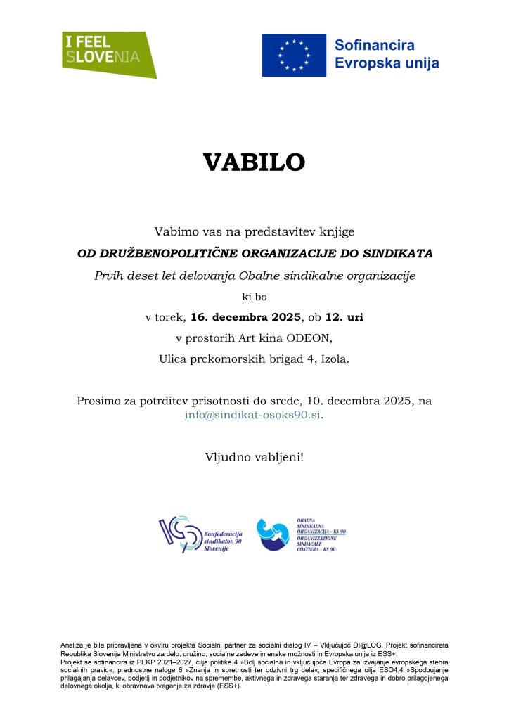 VABILO – predstavitev knjige Od družbenopolitične organizacije do sindikata